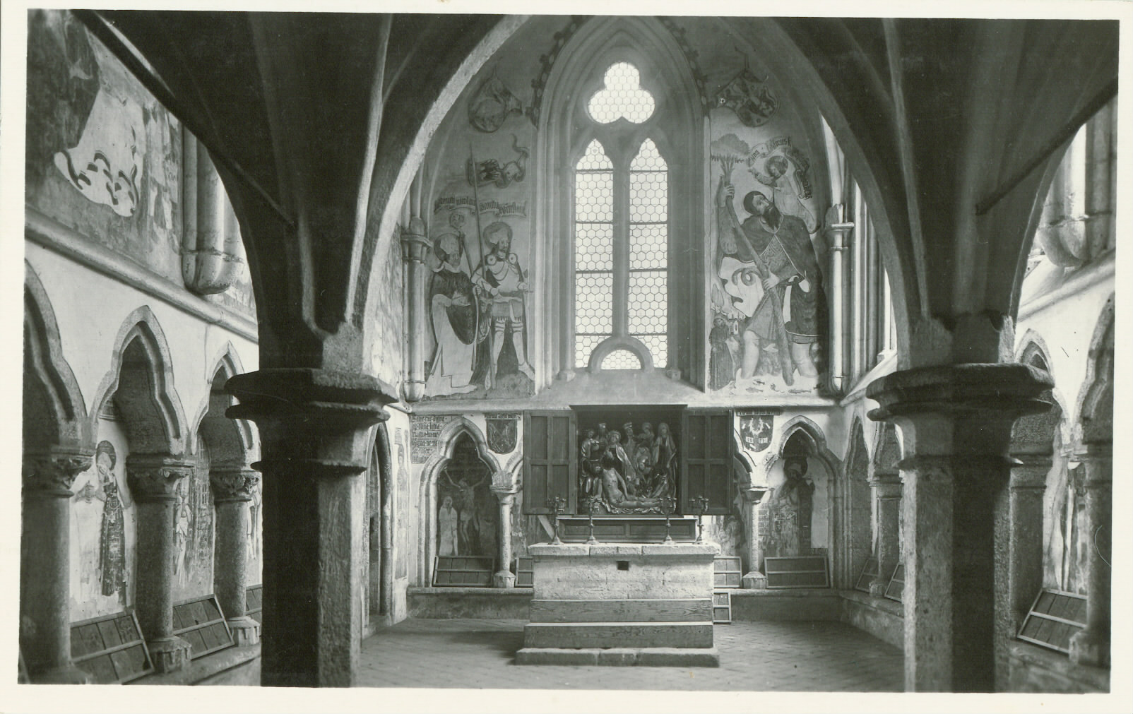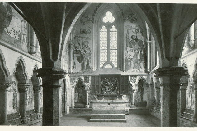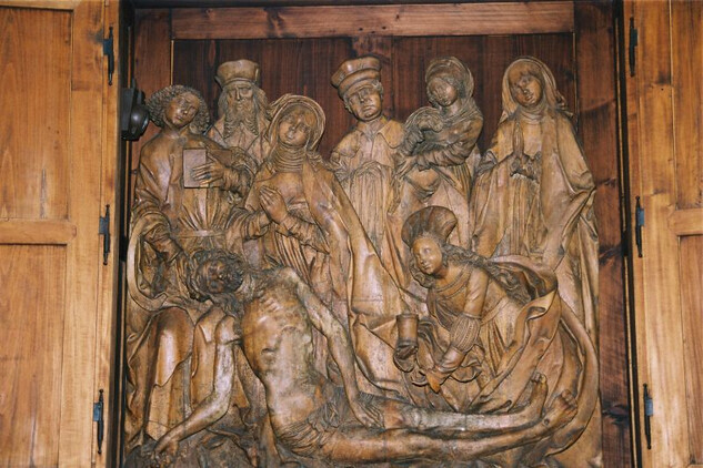 On the stone Gothic altar table is placed a fragment of a later Gothic altar with a relief of the Mourning of Christ, carved 1500-1510 by a Master of Zvíkov Mourning.